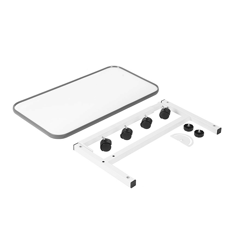 • Нижняя часть стола располагается под кроватью, а столешница удобно размещается над кроватью пациента, создавая комфортные условия для чтения, приема пищи и досуга