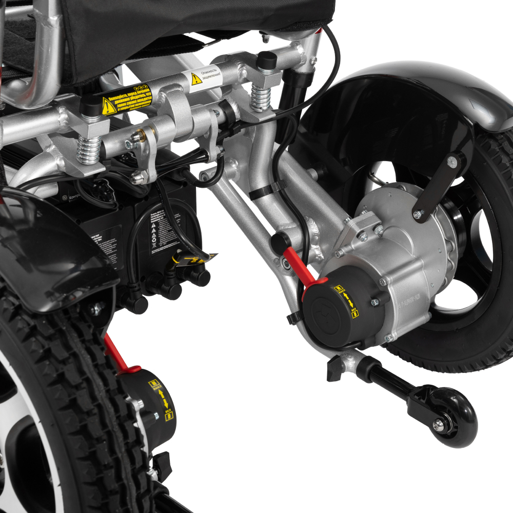Коляска инвалидная с электроприводом Ortonica Pulse 710 - легкая и прочная с удобным механизмом складывания без съема аккумуляторов. Модель в сложенном виде не превышает размеров дорожного чемодана.